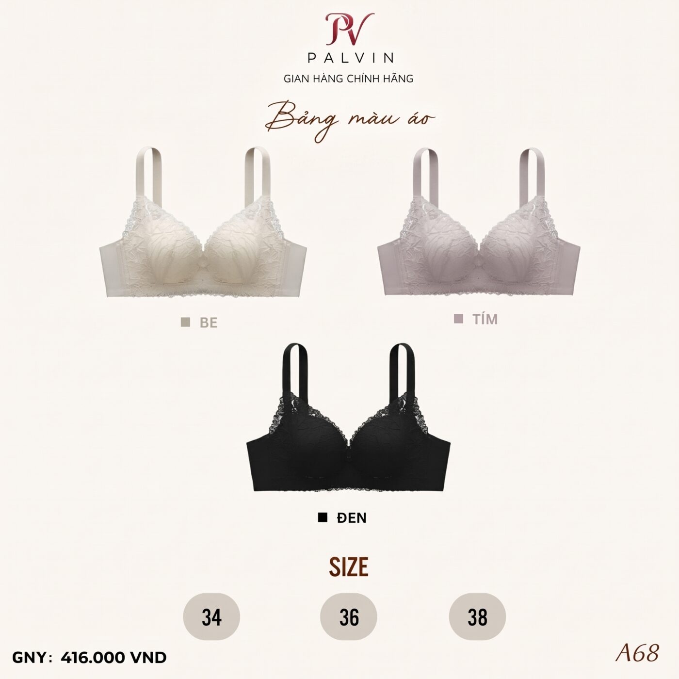 Áo ngực 6140 ren chính là biểu tượng của sự ngọt ngào và tinh tế, giúp nàng tôn vinh vẻ đẹp nữ tính một cách trọn vẹn nhất! 😍 🌸 Thiết kế ren hoa phủ toàn bộ cúp áo vô cùng sắc nét, kết hợp cùng form dáng ôm sát giúp nâng đỡ vòng 1 tự nhiên và quyến rũ. ✨ 🌿 Chất liệu cao cấp mềm mại, thoáng mát, mang lại cảm giác dễ chịu tuyệt đối để nàng tự tin tỏa sáng suốt ngày dài năng động. 💃 📏 Bảng size chuẩn 34, 36, 38 với ba sắc màu cực xinh: Be thanh lịch, Tím mộng mơ và Đen huyền bí cho nàng thỏa sức lựa chọn. 🎀
