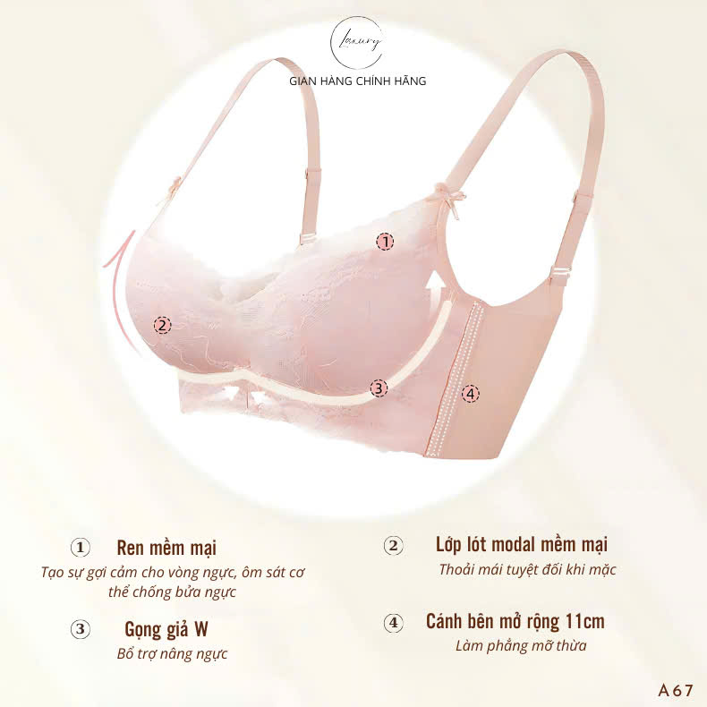Áo ngực 6630 LXANN106 là "chân ái" giúp tạo đường cong nổi bật và bề mặt cong tự nhiên ngay cả với nàng có vòng 1 khiêm tốn! 😍 🌸 Thiết kế gọng giả W kết hợp vải hỗ trợ hình lưỡi liềm giúp nâng đẩy vòng 1 hiệu quả, chống bửa ngực và định hình form dáng cực chuẩn. ✨ 🌿 Chất liệu ren mềm mại phối lớp lót modal siêu êm ái, mang lại cảm giác thoải mái tuyệt đối và vẻ ngoài vô cùng gợi cảm, quyến rũ. 💃 📏 Cánh bên mở rộng 11cm cùng đai lưng liền mạch giúp làm phẳng mỡ thừa, cho nàng tự tin diện mọi trang phục bó sát mà không lo hằn vết. 🎀 💰 Đầy đủ size 34, 36, 38 với bảng màu ngọt ngào: Đen, Be trắng, Da hồng – Siêu phẩm không gọng, an toàn khi giặt máy